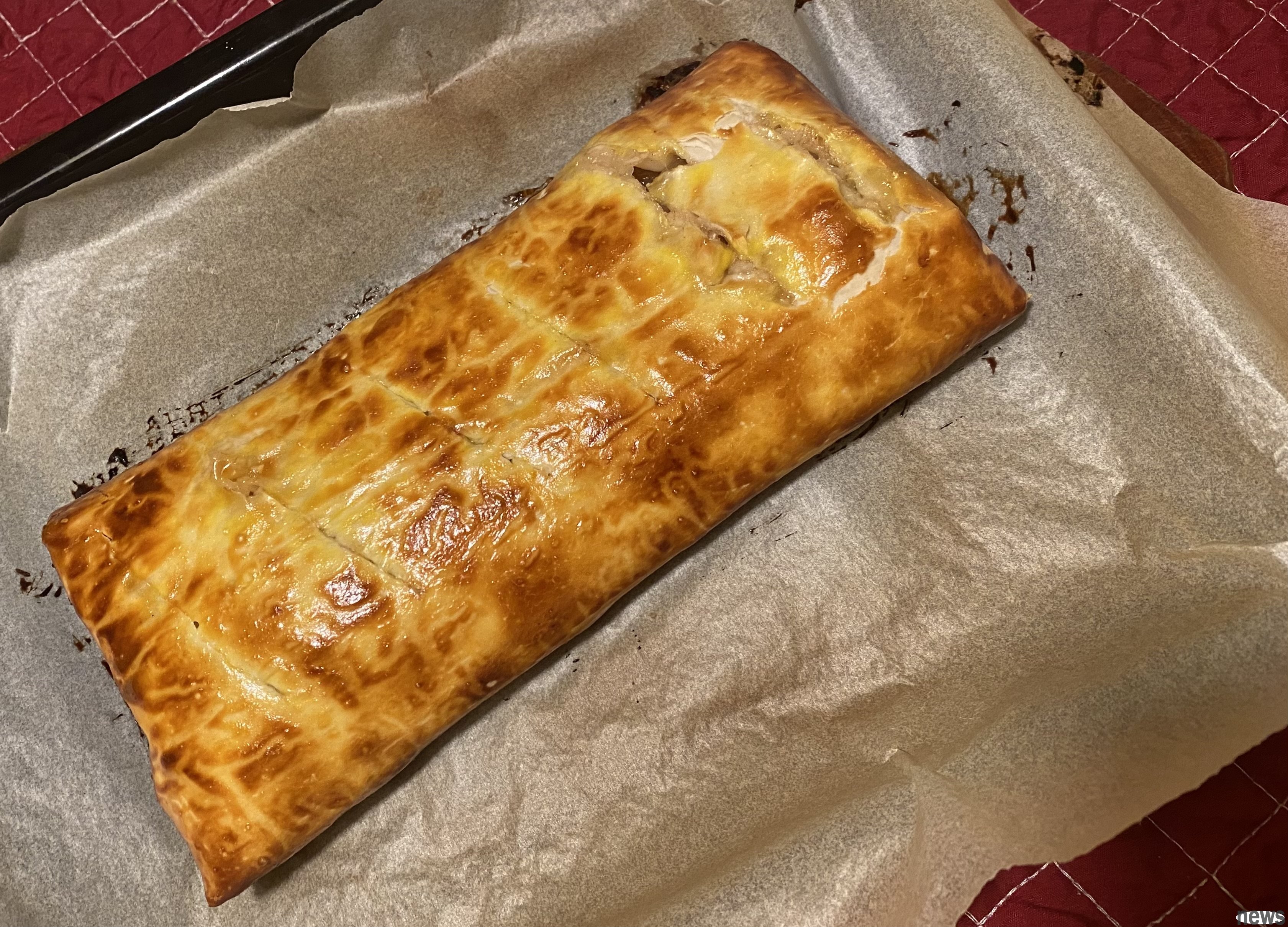Effortlessness is my main principle in the kitchen, so I use ready-made thin French dessert dough. If I were in Taiwan, I would choose spring roll dough. Cut the apples into small pieces at will, add a little brown sugar, cinnamon, lemon juice, and orange slices and cook until soft and soft. Brush butter on the dough, stack them one by one, about 6-8 layers, then place the cooked pulp in the center, wrap it with dough, and brush with egg yolk. Bake in the oven at 400 degrees until golden brown and fragrant, about 30 minutes. Take it out and sprinkle it with powdered sugar, and eat it while it's still hot. It's perfect for the warm atmosphere in the slightly cold autumn.
