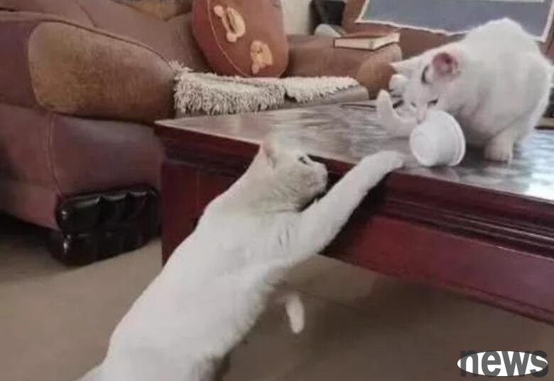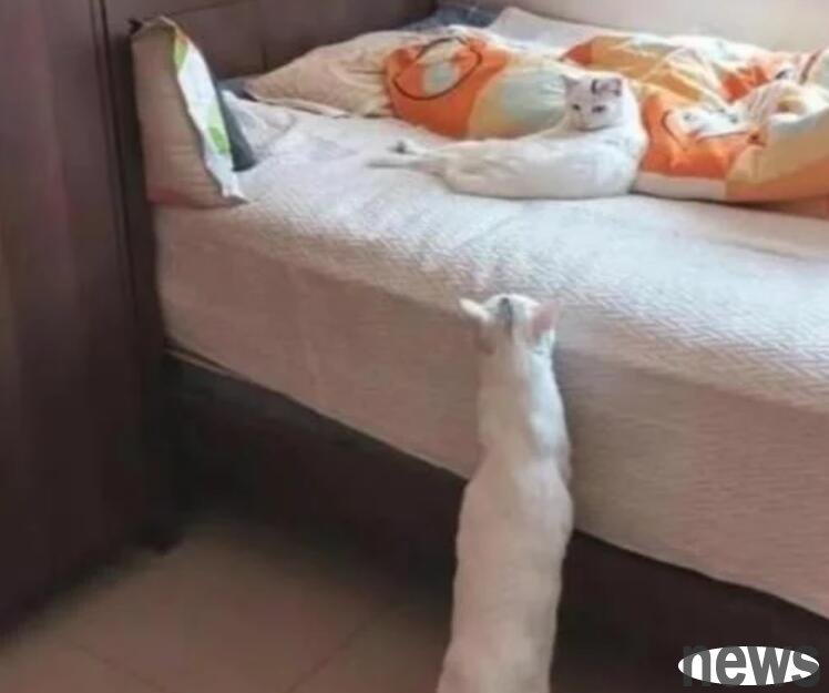 Especially the little black hair on the head. With the two "meows" in unison, the two cats were stunned for a moment: Am I looking in the mirror?
