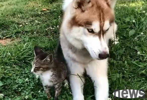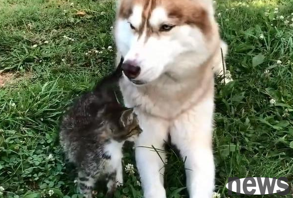 Only this one-month-old kitten is also full of energy. After the husky helped take care of the kitten, the poop shovel suddenly felt relieved. With a husky accompanying a kitten, the scavenger only has to bear their food and drink. It used to be so easy to raise a cat!