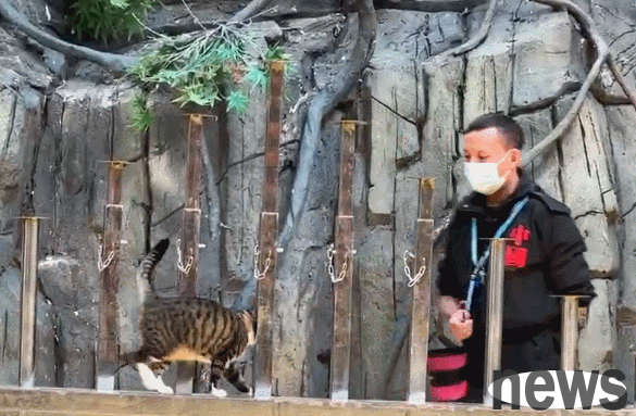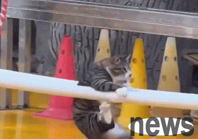 From the video clips circulated on the Internet, you can see that a tabby cat is performing a performance of climbing parallel bars, using its elbows to exert force, hanging its entire body on the bars, walking from one side to the other, and then getting a small dried fish from the trainer. Then the trainer turns around and continues to perform.