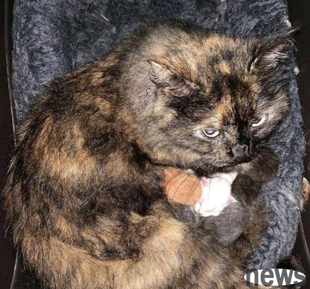 Due to the sudden intrusion of humans, the mother cat was so frightened that she even hid her own children.