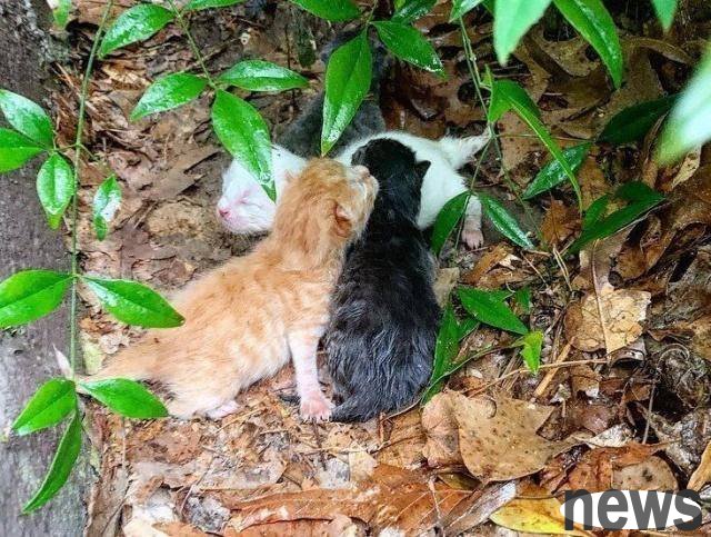 These kittens were just born. Unfortunately, they didn’t even have a cat nest. It happened to be raining lightly that day, and the ground was all wet.