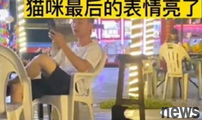He was kind-hearted and bought a sausage specially for the stray cat.