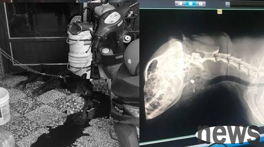 A large bloodstain was left at the scene. The owner originally thought it was a bored person shooting firecrackers at the dog during the Mid-Autumn Festival. Unexpectedly, he accidentally kicked a bullet casing while walking around the house, and immediately contacted the police to collect evidence. Later, he also took the dog's body for X-rays and saw that the bullet was stuck in the neck. "It's really sad... I can't imagine such a person coming to someone's house without permission, petting a dog, getting bitten, and then shooting it to death..."