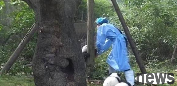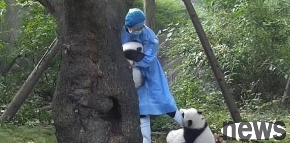 On one occasion, the panda dumplings were put to play in the yard by the wet nurses, and the dumplings also had a great time. But before I knew it, it was time to collect the cats again. Tuanzi here was very excited to climb the tree to play. Fortunately, the nanny saw it and quickly picked up Tuanzi and prepared to take it back.