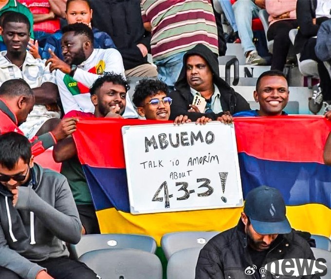 😅In the Cameroon game last night, the fans in the stands sent a message to Mbemo: "Mbemo, talk to Amorim about the 4-3-3 formation"