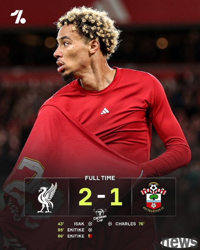 In the third round of the League Cup, Liverpool beat Southampton 2-1!