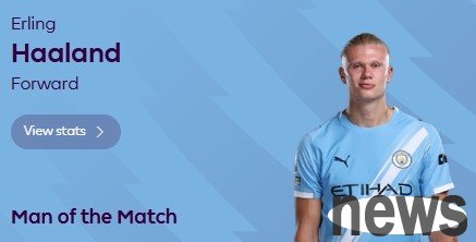 In the 10th round of the 2025-26 Premier League season, Manchester City 3-1 Bournemouth at home. Haaland started the game and contributed twice. After the game, he was elected the Premier League's official player of the match.