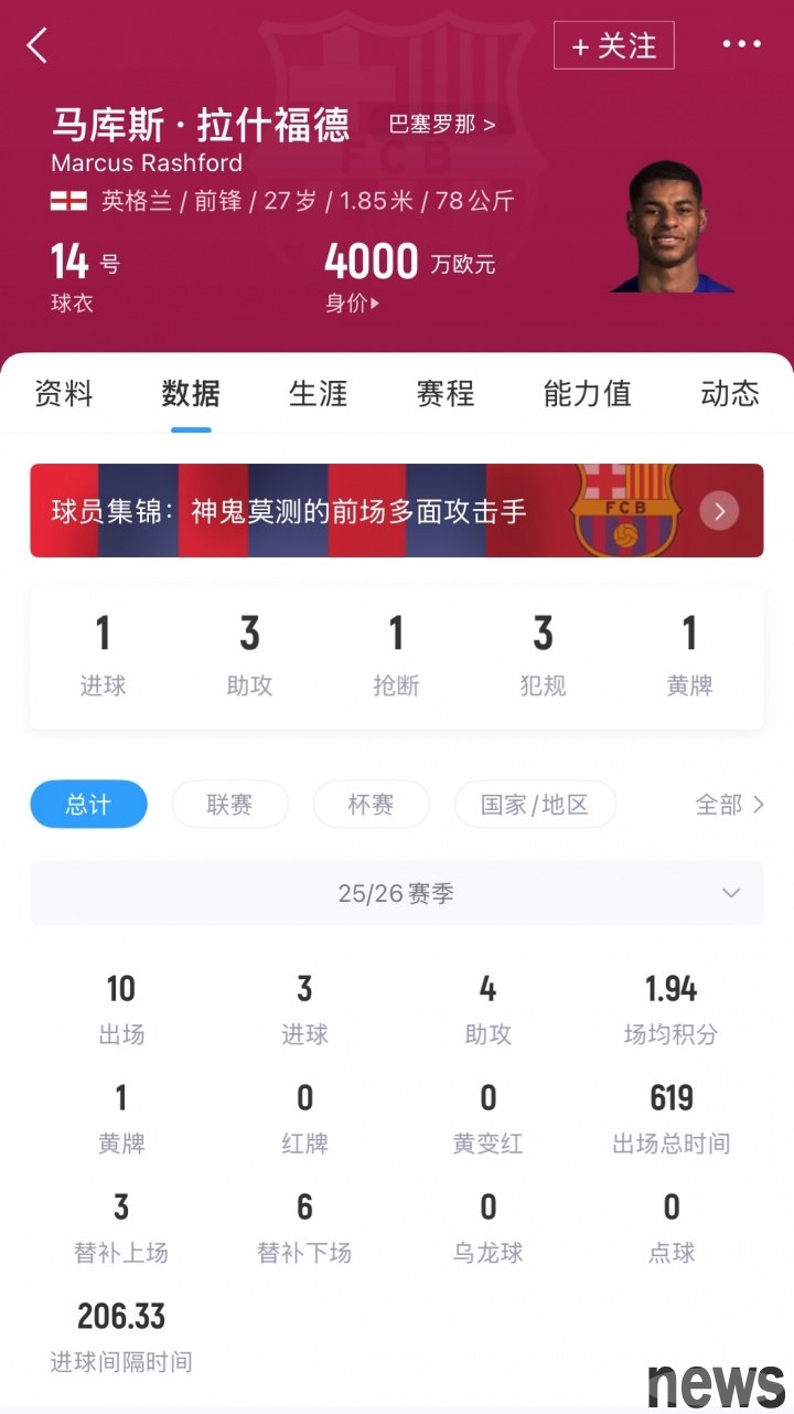 The 27-year-old Rashford has played 10 times on behalf of Barcelona this season, contributing 3 goals and 4 assists. The current transfer price is 40 million euros.