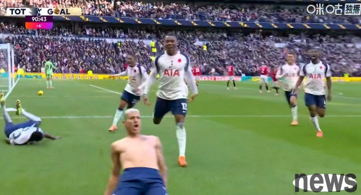 Today, Manchester United played against Tottenham in the Premier League. In the 91st minute of the game, Salisson scored to overtake Manchester United! After scoring the goal, Rissarisson took off his clothes to celebrate passionately, then covered his face and couldn't help himself.