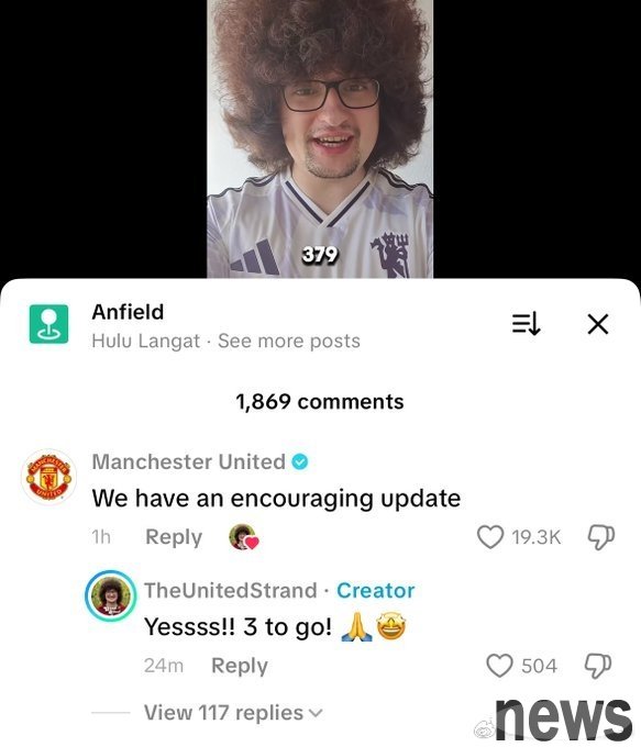 was officially flipped! Manchester United fan "Grown Hair Brother" once swore that the home team would only get a haircut after winning five consecutive games. After last night's two-game victory over Liverpool, Manchester United's official media liked and commented on the video of him growing his hair for 379 days: