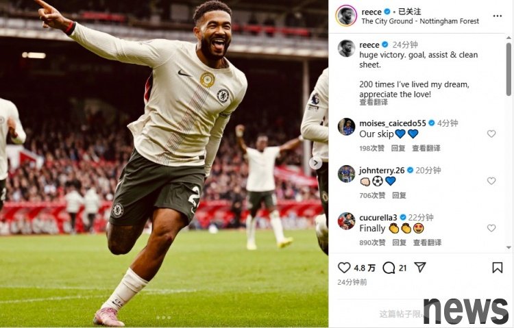 Today, Chelsea defeated Nottingham Forest 3-0 in the Premier League. Reece James posted on Instagram after the game to celebrate the 200-game milestone in his Blues career.